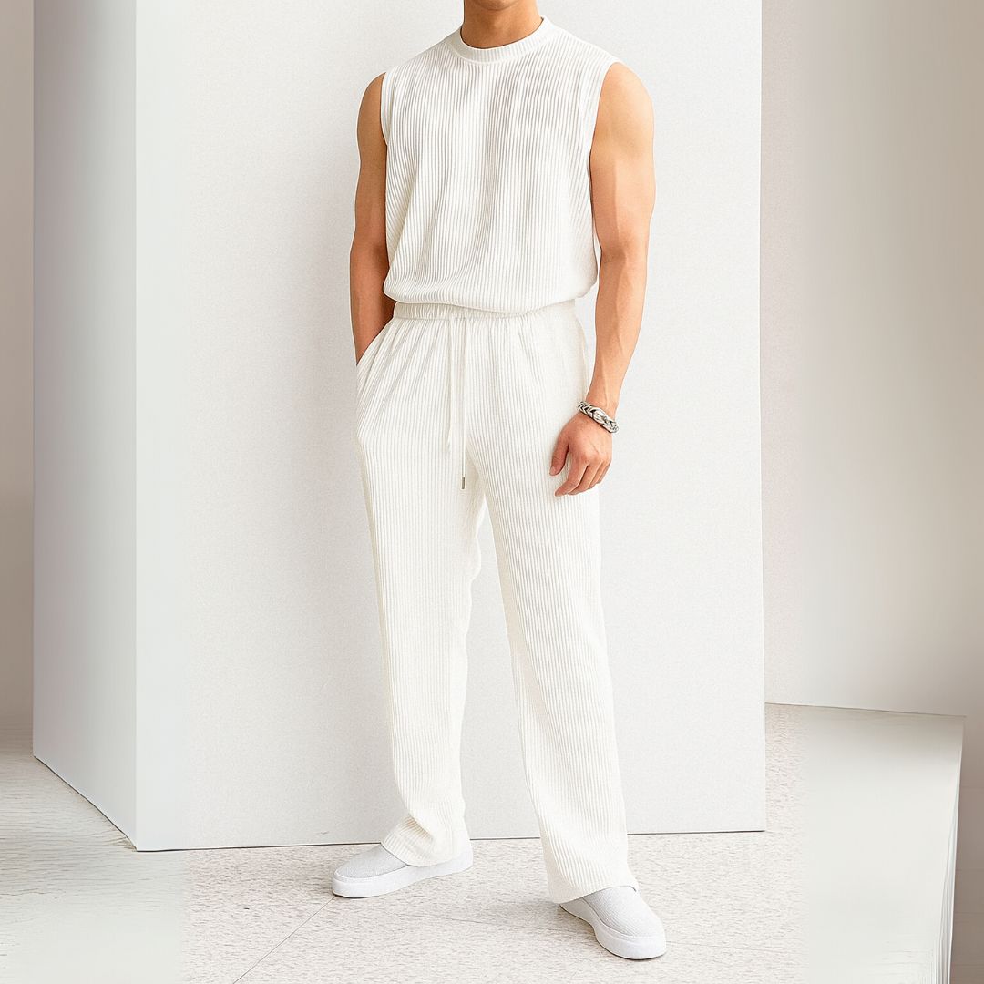 Premium Cotton Sleeveless Co-Ord Set – White